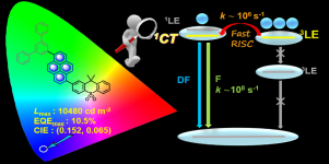 4. 构建出了首例具有紫外发射能力的热激活延迟荧光电致发光材料