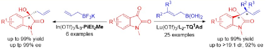 37.Tang, X. X.; Su, Z. S., Yan, L. Q.; Tang, Q.; Dong, S. X.*; Lin, L. L. Xiaoming Feng, X. M.* Diastereo- and Enantioselective Synthesis of 3-Allyl-3-hydroxyoxindoles via Allylation of Isatins. Org. Lett. 2021, 23, 8419.