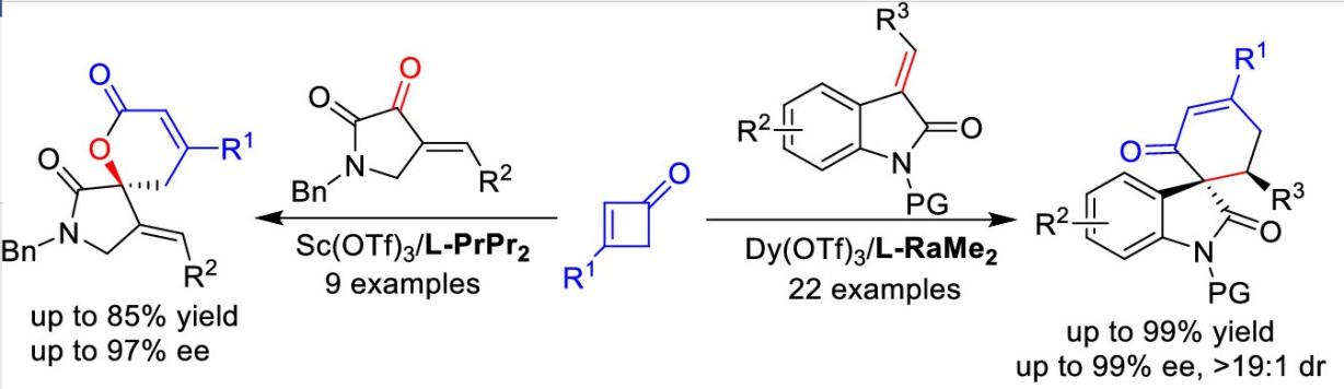 42.Luo, Y.; Zhang, H.; Wang, S. Y.; Zhou, Y. Q.; Dong, S. X.*; Feng, X. M.* Asymmetric Catalytic Diverse Ring Opening/Cycloadditions of Cyclobutenones with (E)-Alkenyloxindoles and (E)-Dioxopyrrolidines. Org. Lett. 2020, 22, 2645.