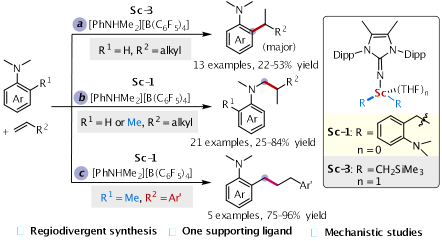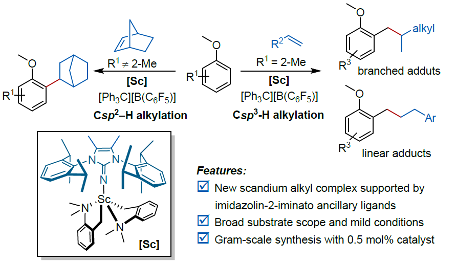 26.Wang. S. Y.; Zhu, C. H.; Ning, L. C.; Li, D. W.; Feng, X. M; Dong, S. X.* Regioselective C-H alkylation of anisoles with olefins by cationic imidazolin-2-iminato scandium(III) alkyl complexes. Chem. Sci. 2023, 14. 3132 (cover picture).