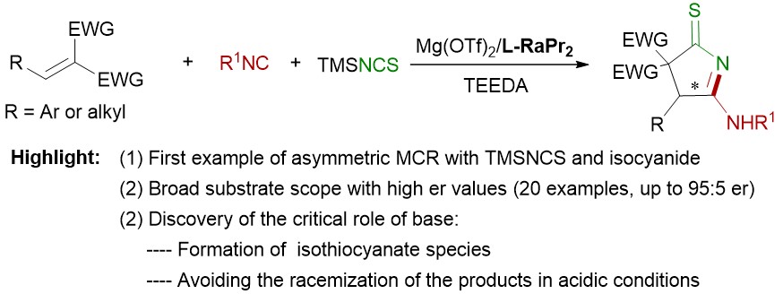 36.Xiong, Q.; Luo, Q. L.; Zhang, T. H.; Dong, S. X.*; Liu, X. H.; Feng, X. M.* Catalytic Asymmetric Multicomponent Reaction of Isocyanide, Isothiocyanate and Alkylidene Malonates. Chem. Commun. 2021, 57, 7288.