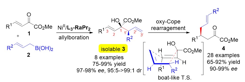 9.Tang, Q.; Fu, K.; Ruan, P. R.; Dong, S. X.*; Su, Z. S; Liu, X. H.; Feng, X. M.* Asymmetric Catalytic Formal 1,4-Allylation of β,γ-Unsaturated α-Ketoesters via Allylboration/Oxy-Cope Rearrangement. Angew. Chem. Int. Ed. 2019, 58, 11846.