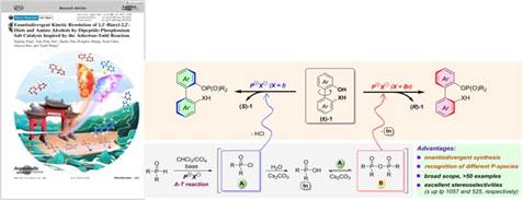46. Siqiang Fang#, Jian-Ping Tan#, Jianke Pan, Hongkui Zhang, Yuan Chen, Xiaoyu Ren, Tianli Wang* "Enantiodivergent Kinetic Resolution of 1,1'-Biaryl-2,2'-Diols and Amino Alcohols by Dipeptide-Phosphonium Salt Catalysis Inspired by the Atherton-Todd Reaction" Angew. Chem. Int. Ed. 2021, 60, 14921-14930. (Selected as the Frontispiece and Hot Paper by Angew Chemie)