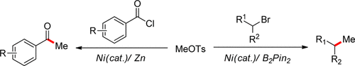 25.Z. Liang,‡ W. Xue,‡ K. Lin, H. Gong. Nickel-Catalyzed Reductive Reductive Methylation of Alkyl Halides and Acid Chlorides with Methyl p-Tosylate. Org. Lett. 2014, 16, 5620–5623.