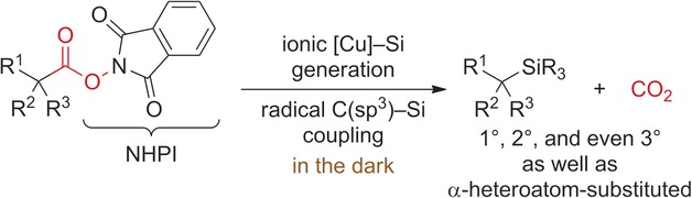 21.W. Xue, M. Oestreich. Copper-Catalyzed Decarboxylative Radical Silylation of Redox-Active Aliphatic Carboxylic Acid Derivatives. Angew. Chem. Int. Ed. 2017, 56, 11649–11652.
