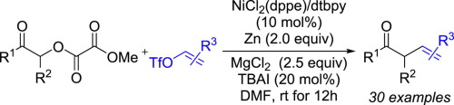 27.X. Tao, K. Yao,* W. Xue.* Ni-Catalyzed Cross-Electrophile Coupling of α-Hydroxy Carbonyl Compound-Derived Oxalates with Vinyl Triflates. Tetrahedron Lett. 2021, 73, 153129.