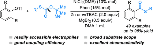 26.Z. Zhao, Y. Gong, W. Tong, W. Xue*, H. Gong.* Ni-Catalyzed Cross-Electrophile Coupling of Aryl Triflates withThiocarbonates via C–O/C–O Bond Cleavage. Org. Lett. 2021, 23,2158–2163.