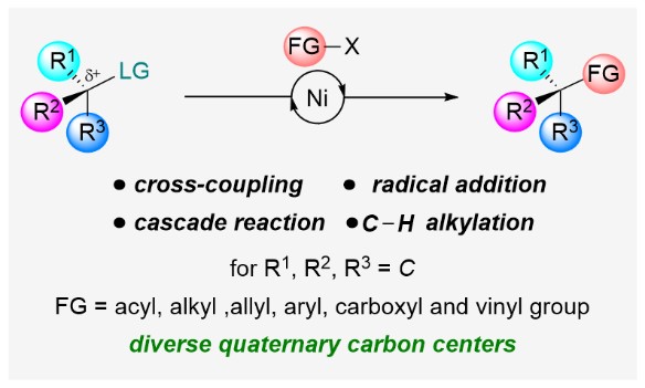 16.W. Xue,* X. Jia, X. Wang, X. Tao, Z. Yin, H. Gong*. Nickel-Catalyzed Formation of Quaternary Carbon Centers Using Tertiary Alkyl Electrophiles. Chem. Soc. Rev. 2021, 50, 4162–4184.