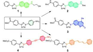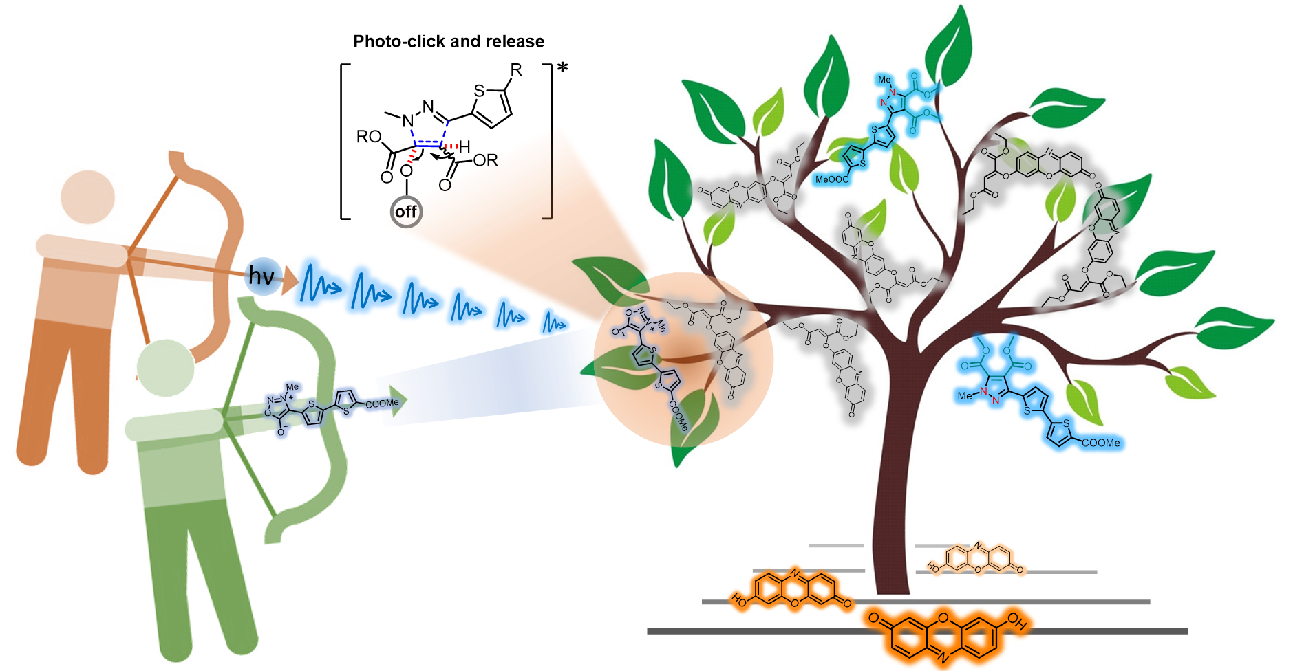 建立了以介离子“悉尼酮”为基础的“光点击”化学新方法,丰富了“光点击”化学前沿工具库,达成可控、高效构建共价键,以及协同断键释放功能。实现其在活体中原位精确标记生物分子以及药物分子释放的诊疗一体化交叉应用。原创发现一类T-型“光开关”环偶氮分子,其作为独特的亲偶极体与悉尼酮配套组建新一类“光点击”反应系统,验证了这一全新生物正交报告基的全能性,提出从光能利用的角度来突破光点击化学发展的概念。定向进化MmPylRS(吡咯赖氨酸tRNA合成酶),创新发展环偶氮非天然氨基酸的遗传密码扩展系统(GCE),实现活细胞中蛋白高精度示踪以及光控基因表达的新思路。