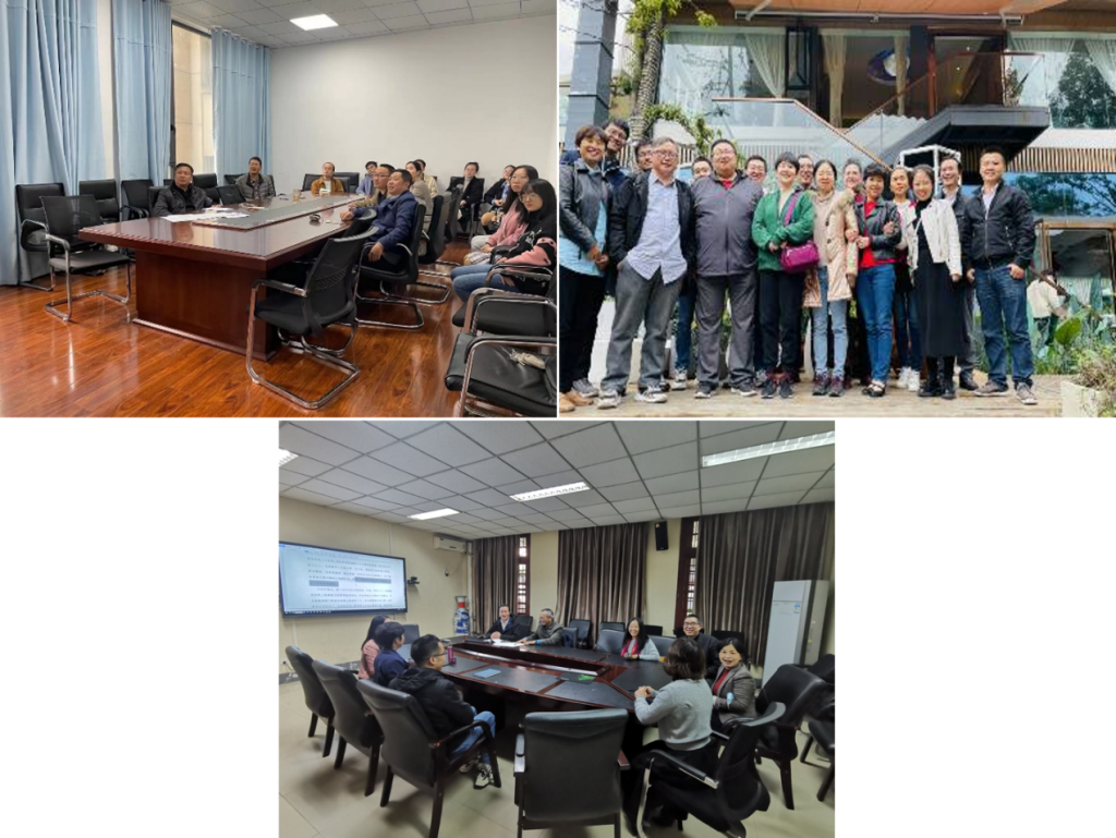 图1 无机化学教研室基层教研活动(左上)、物理化学教研室教学科研交流活动(右上)、物理化学教研室政治学习和教学研讨(左下)。