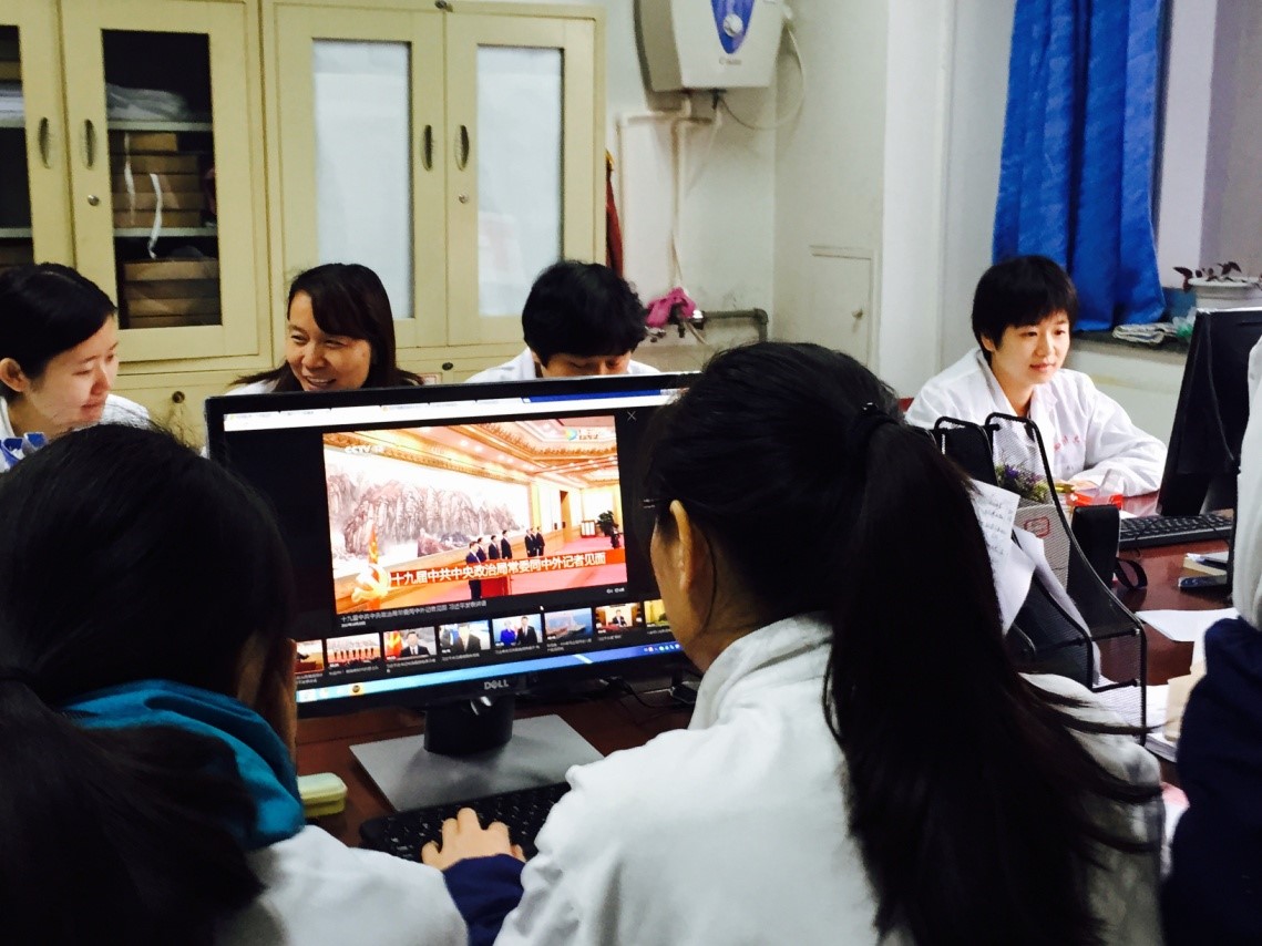 2017年10月,在中共十九大召开之际,化学实验教学中心党支部各位党员积极收看十九大直播。10月30日,我们组织大家集中,再次收看十九大相关视频,学习十九大相关政策。大家认真观看,用心学习,积极讨论,牢记习近平总书记强调的中国共产党人的初心和使命,紧密团结在党中央周围,高举中国特色社会主义伟大旗帜,解放思想,改革创新,锐意进取,埋头苦干,为实现党的十九大确定的目标任务而奋斗。