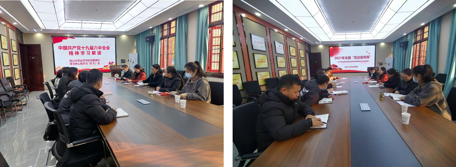 2021122日,在化学馆122会议室召开化学学院党委理论学习中心组学习(扩大)会议,认真学习贯彻党的十九届六中全会精神。