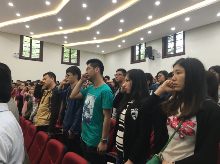 化学学院党委书记王智猛老师首先对学校宣讲团的到来表示了热烈欢迎,张学龙副书记在讲话中介绍了此次宣讲的目的和意义。马克思主义学院的张洪松老师以《模范遵守准则条例,永做合格共产党员》为题,详细解读了《党章》、《准则》和《条例》。通过解读帮助广大党员准确理解掌握党规党纪和习近平总书记系列重要讲话精神,切实增强政治意识、大局意识、核心意识、看齐意识,做合格党员。在宣讲过程中,全体学生党员激情豪迈地再次重温了入党誓词,合唱了《三大纪律八项注意》,把宣讲会推向了高潮。