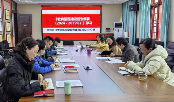 2025年2月25日,化学学院党委理论学习中心组召开学习会,学习《教育强国建设规划纲要(2024-2035年)》,全体理论学习中心组成员参加会议。谢均主持会议并讲话。