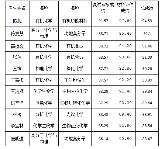 英国上市公司365化学学院2019年“申请考核制”博士复试成绩公示: