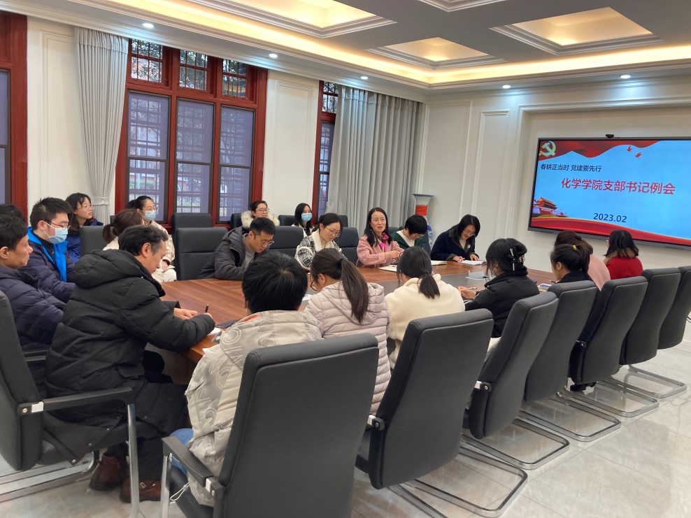 为进一步学习贯彻党的二十大会议精神,落实《中国共产党普通高等学校基层组织工作条例》,抓实党支部书记例会制度,持续加强党支部标准化规范化建设,提升党支部战斗堡垒作用。2023年2月28日下午,化学学院党支部书记培训会暨新学期第一次例会在化学馆103会议室举行。党委书记谢均主持会议,全体支部书记参会。