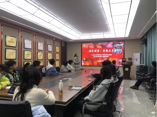 接下来,党支部成员们分别从日常、美景、体育、课外活动及学习五个方面来向同学们展示大学生活。李慧敏、刘睿智同学分享了川大的日常生活,表示大家能够在川大吃得放心、行得方便、住得舒适,课外活动也十分丰富、乐得实在。黄灿灿同学以“美美与共,前景长虹”为题,介绍了川大的校内美景以及成都的著名景点。在体育方面,刘锦誉、杨显钦同学展示了川大的体育设施及体育活动,希望同学们发扬体育精神、增强团队意识、追逐体育梦想。张祖维同学通过自己的切身体会介绍了形式多样的团日活动、社团活动。在学习方面,肖文武、王紫尘、李文翰同学对比了大学与初中学习的不同,介绍了大学学习的基本情况,激发了同学们对于大学课程的美好憧憬。