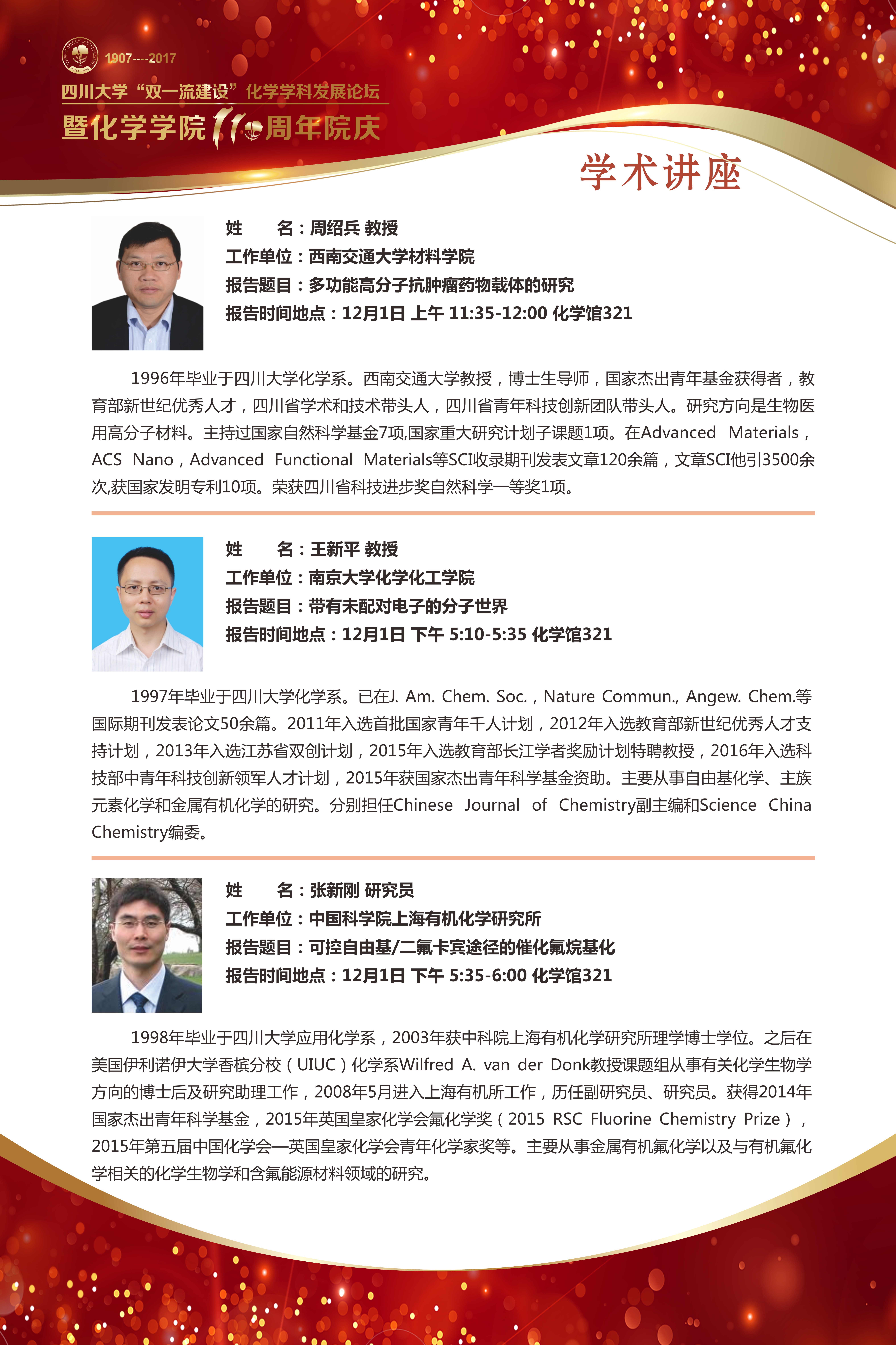 上一条:英国上市公司365“双一流建设”化学学科发展论坛暨化学学院110周年院庆公告[2017/11/24]