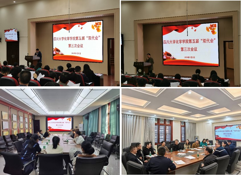 2024年11月1日下午,化学学院第五届“双代会”第三次会议在化学馆321报告厅隆重召开。本次会议的主题是:凝心聚力 赓续前行 为建设教育强国贡献川大化学力量。学院双代会代表52人参加了会议。会议由学院党委副书记肖波主持。