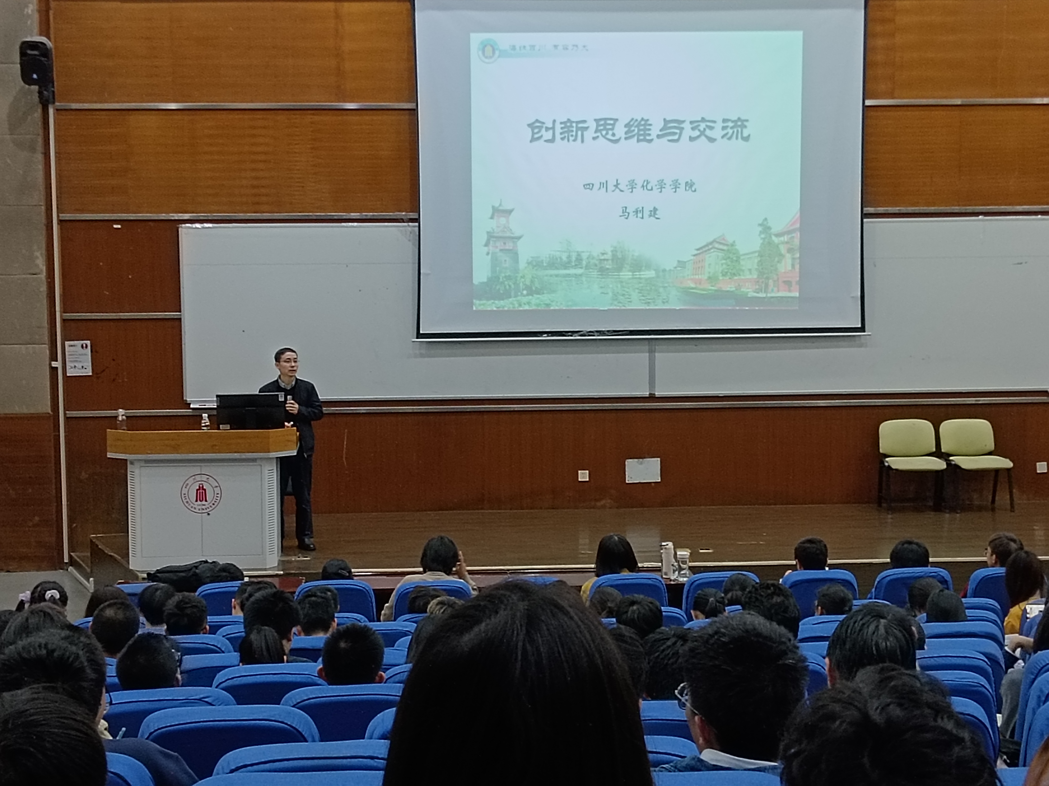 2023年11月3日,在江安校区综合楼C407,化学学院副院长、国家杰青获得者马利建教授为学院2023级本科生同学带来了“创新思维与交流”系列讲座第五讲。