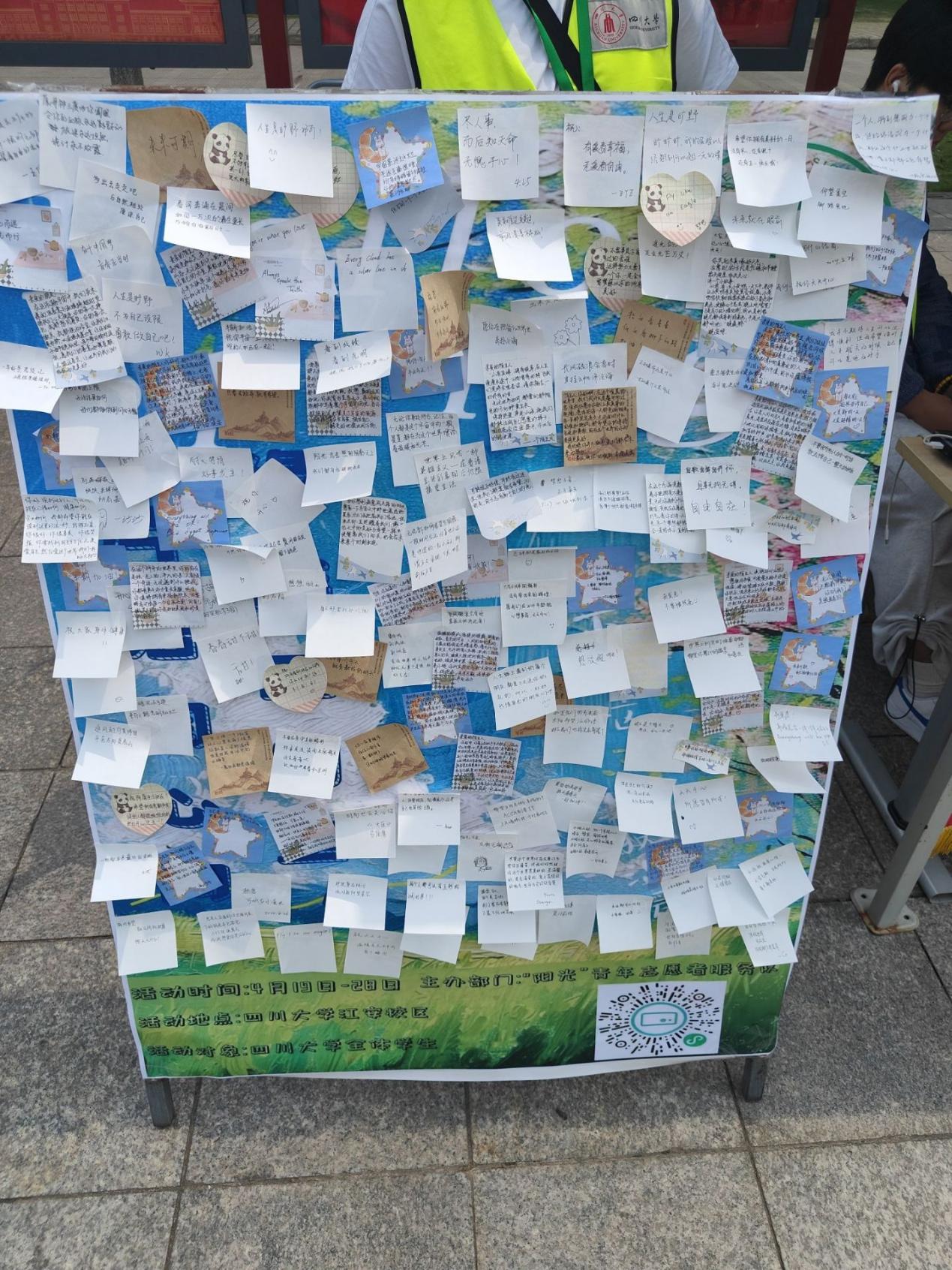 为了丰富校园文化生活,关注学生心理健康,2024年4月25-26日,化学学院“阳光”青年志愿者服务队在青春广场顺利开展了“缘结四月里,片语润人心”活动。