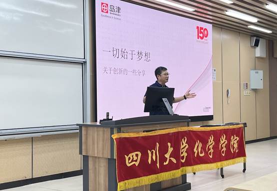 徐部长在致辞中从岛津公司150年的发展历程、诺奖得主田中耕一先生的事迹等方面生动的向同学们阐述了梦想和创新的重要作用。 “创新不是天才的专利,是普通人对世界保持好奇、敢于尝试的副产品”,徐部长和同学们频繁互动,幽默风趣的讲述风格和大量鲜活的案例让同学们获益匪浅。
