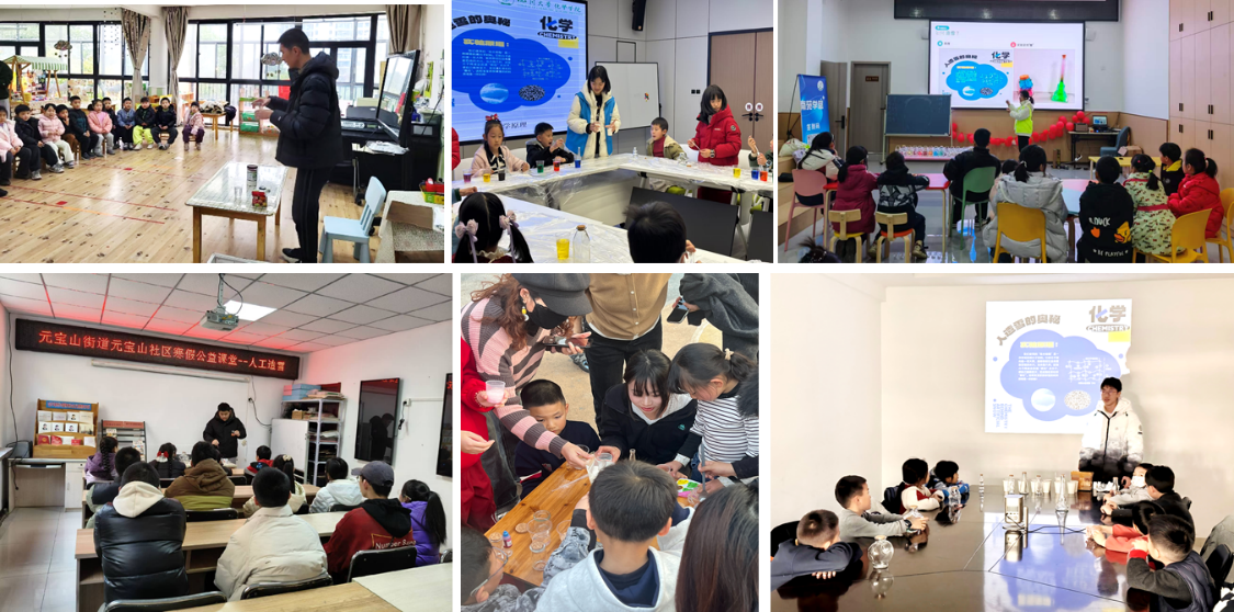 为深入学习贯彻习近平总书记关于青年工作的重要思想,引导广大青年学生在社会实践中厚植家国情怀、了解国情民情、增长知识才干,英国上市公司365化学学院坚持将专业教育与社会服务深度融合,鼓励青年学子,利用寒假期间积极开展社会实践,发挥学科专业优势,回到当地开展“妙趣化学·冬日奇境”趣味化学实验活动,引领同学们在服务基层、奉献社会的生动实践中上好与专业相结合的“大思政课”。