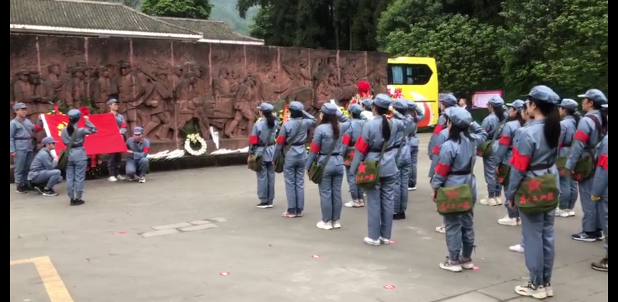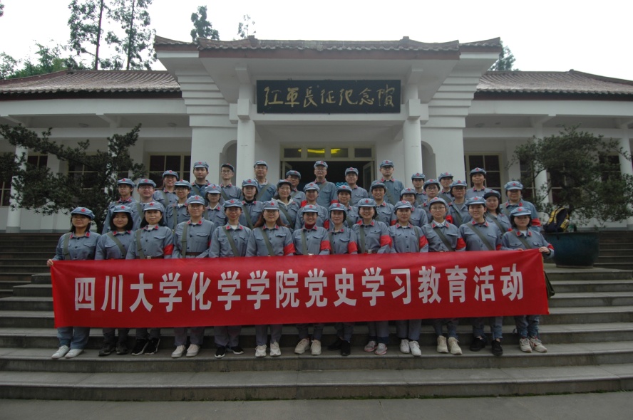 2021年4月22日,化学学院部分党员师生代表赴邛崃红军长征纪念馆开展党史学习教育活动。“红军不怕远征难,万水千山只等闲”,党员同志们换上红军服,学习打绑腿,遵守着装规范和军容军纪。