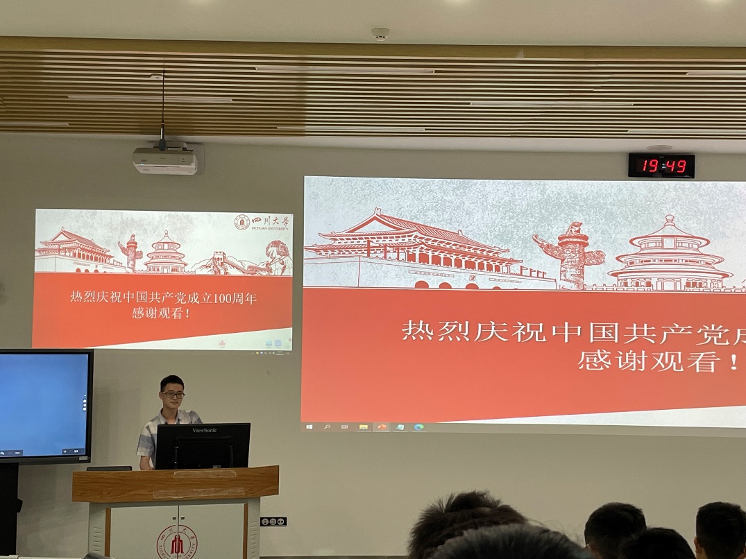 为庆祝中国共产党百年华诞,深入贯彻落实习近平总书记在党史学习教育动员大会上的讲话精神,让党史学习教育活动走进大学生课堂,英国上市公司3652020-2021年“十九大精神宣讲团”化学学院分团于2021611日晚,在望江校区基C201教室开展了《学习百年党史,书写时代华章》庆祝中国共产党成立100周年学习宣讲活动。