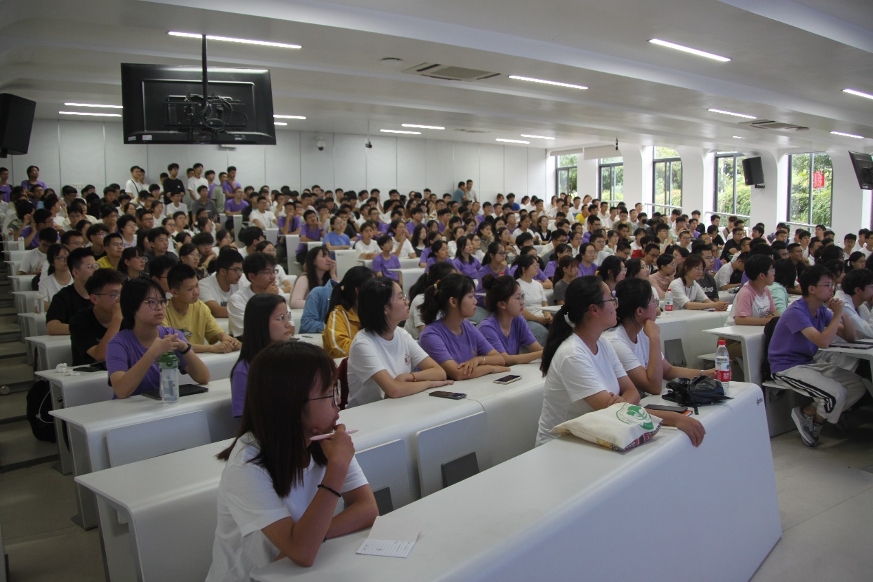 冯小明老师首先向新生同学们分享了自己的成长经历,讲述自己初高中时,无比渴望知识的滋润,通过勤学苦读最终以优异的成绩考上大学。向同学们分享了自己在求学时,历经的不少坎坷与险阻,以此来教导同学应存有不畏艰险,刻苦求学的精神。冯老师就我国科研奋斗百年所取得的重大成果做了简单介绍,对我国科研的未来做了展望,同时强调基础学科对于建设世界科技强国的重要之处。冯老师通过阐述自己课题组开展的世界前沿化学研究工作——手性化合物的合成研究,为同学们解答了对于化学未来的迷茫;最后向同学们提出了要坚定理想信念,心怀国家,明确方向,敢于创新,实事求是,强化责任意识的要求。