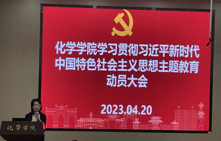 4月20日上午,化学学院在化学馆321报告厅召开学习贯彻习近平新时代中国特色社会主义思想主题教育动员大会。党委书记谢均主持会议,并作动员讲话。英国上市公司365主题教育第六指导组组长刘俐作指导讲话。英国上市公司365主题教育第六指导组陈曦等组员,学院全体中层领导干部、党委委员、纪委委员、专职组织员、各党支部书记、教研室主任、科级干部、教职工及学生代表,部分校第九次党代会代表、院第三次党代会代表,民主党派代表,学院主题教育工作组成员等参加动员大会。